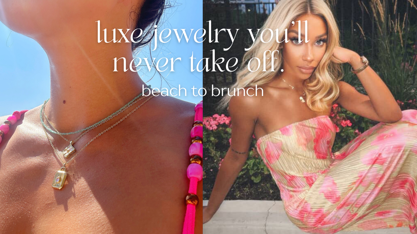 Say goodbye to gold-plated—our jewelry is made for your most exciting life, from ocean swims to brunch days and late-night dancing. Crafted with 14K+ gold, it’s 100x more gold than plated and stronger than solid gold. Stackable and versatile, our pieces move with you.